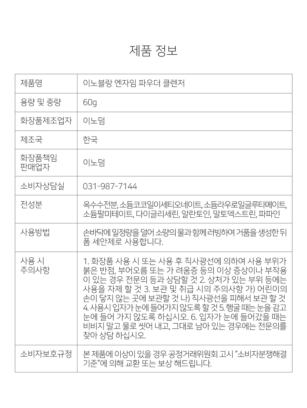 이노블랑 저자극 엔자임 파우더 클렌저 효소 가루 세안제 60g